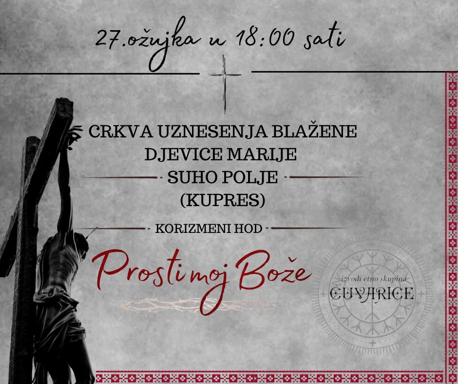 Ove godine Etno skupina Čuvarice ušla je u treću godinu Korizmenog hoda. Iz godine u godinu sve jasnije da to nije samo glazbeni projekt, nego duhovni put koji raste zajedno s ljudima koji mu se pridružuju. Korizmeni hod zamišljen je kao prostor susreta susreta čovjeka s Bogom, ali i čovjeka s čovjekom, kroz pjesmu koja želi postati molitva. Cilj ovoga hoda nije održati koncert, nego stvoriti ozračje sabranosti i tišine u kojem se svatko može prepoznati, donijeti svoje terete i nade te barem na trenutak zastati. Upravo zato korizmeni hod nosi poruku da korizma nije samo vrijeme odricanja, nego vrijeme povratka srcu i pripreme za Uskrs.